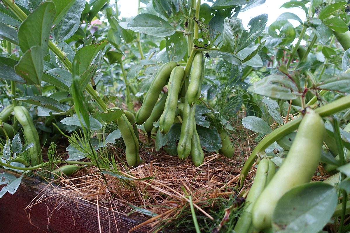 Ett bra år växer det fram massor av baljor från bondbönorna och det blir mycket mat till frysen.