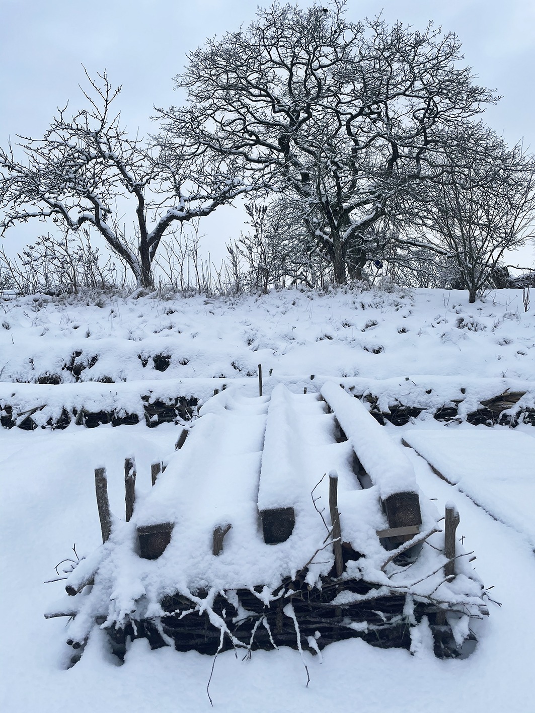 sara bäckmo, skillnadens trädgård, sara backmo, sara's kitchen garden, sowings, sådd, så, trädgård, odla, garden, gardening, köksträdgård, snö, vinter, vinterodling, kviststaket, fence, täckodlad, täckodling, täckodlad bädd, mulched beds