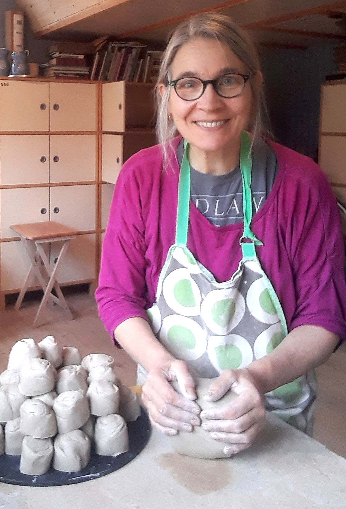 Här är Agneta Brogren i sin ateljé, där hon drejat några hundra blomhållare till Skillnadens. Tack, tack, tack!
