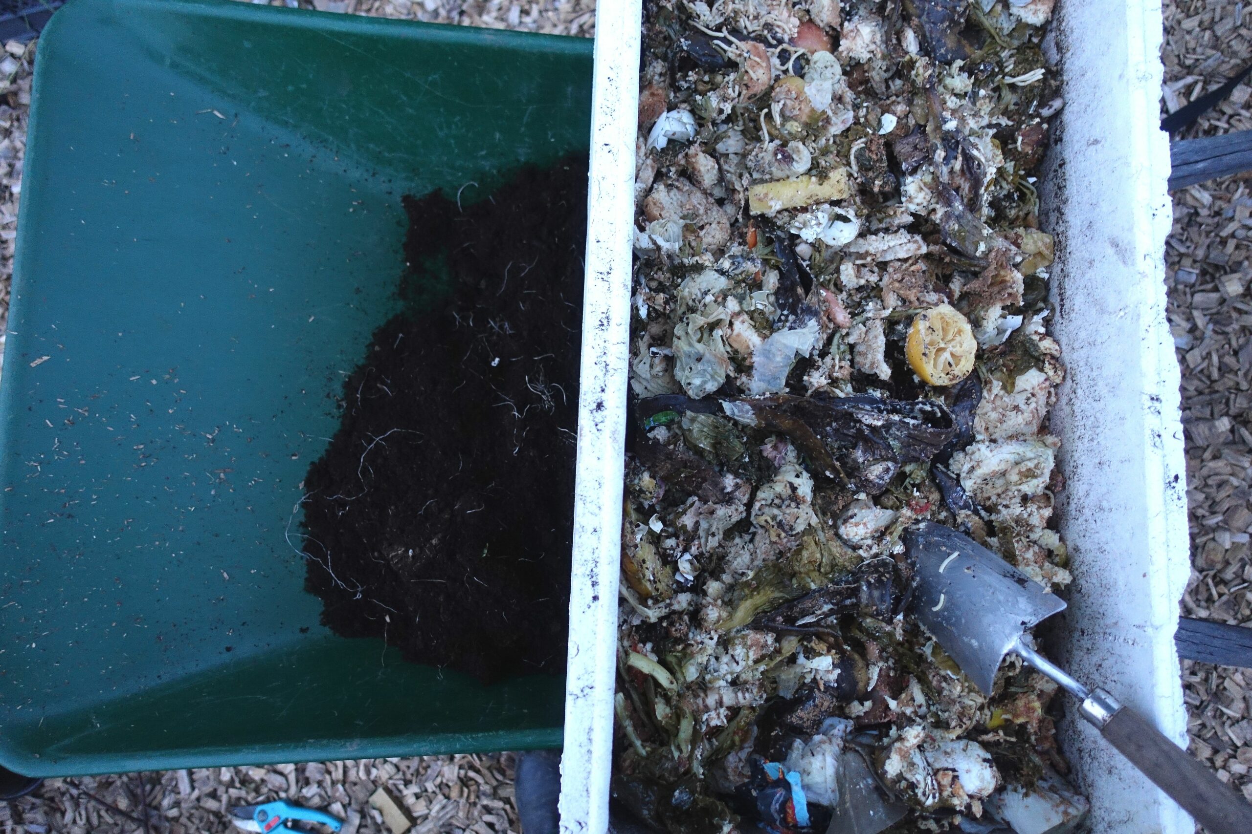 bokashi, kompost, frigolitlåda, skottkärra, jord, skillnadens trädgård, sara bäckmo