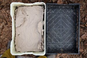 Jag gör den här sådden i en frigolitlåda och i en back med låga kanter.