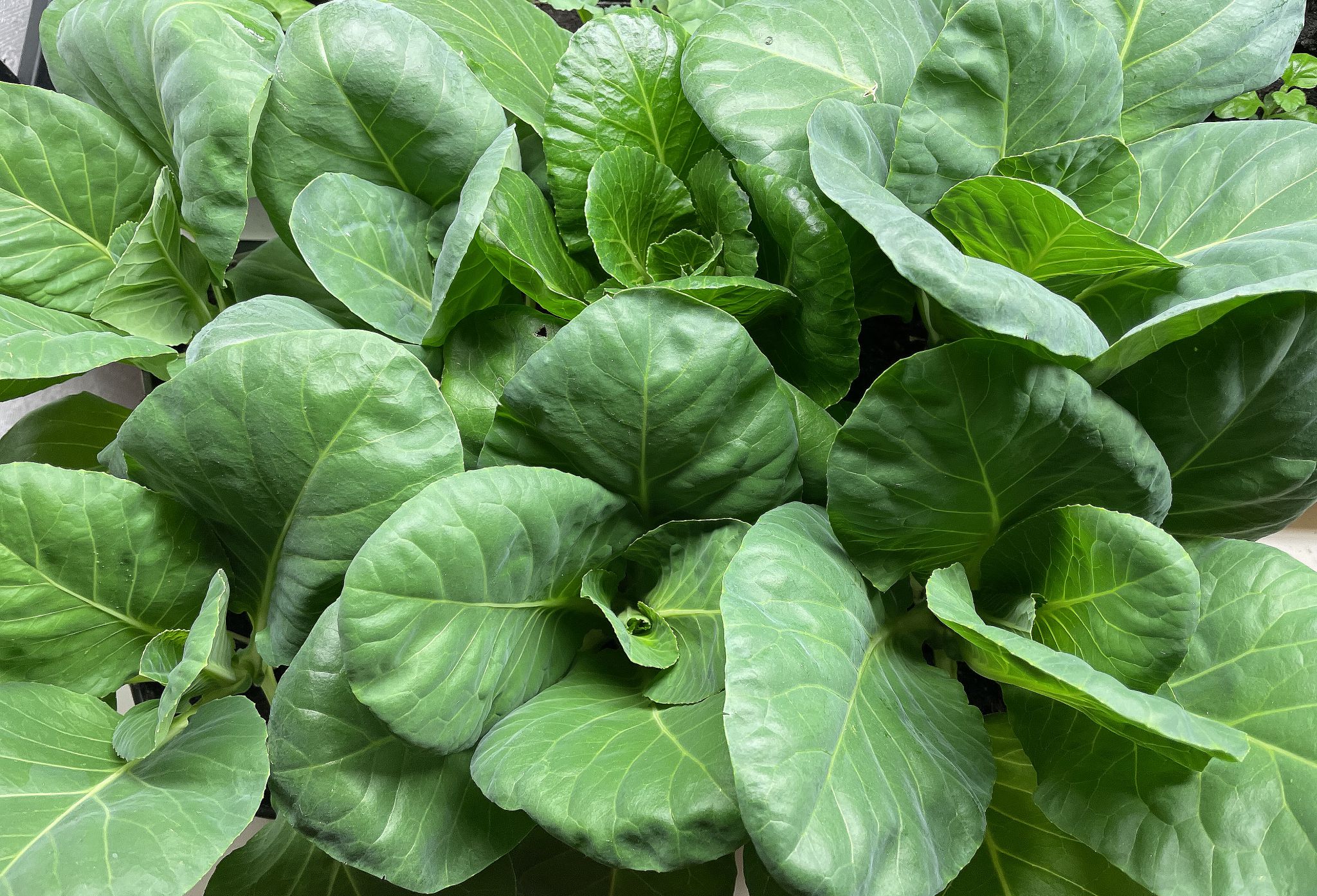 Den här frodiga kålen såddes 1 december. Den har planterats om en gång och därefter gödslats en gång.