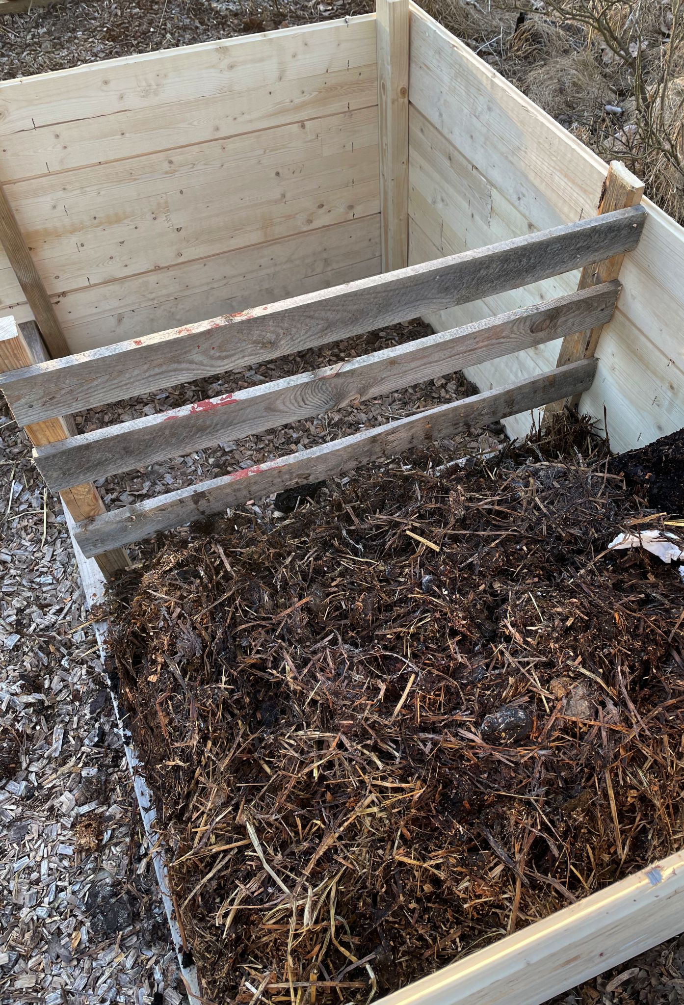 22. March 2021Så här ser komposten ut ovanifrån, med två fack.