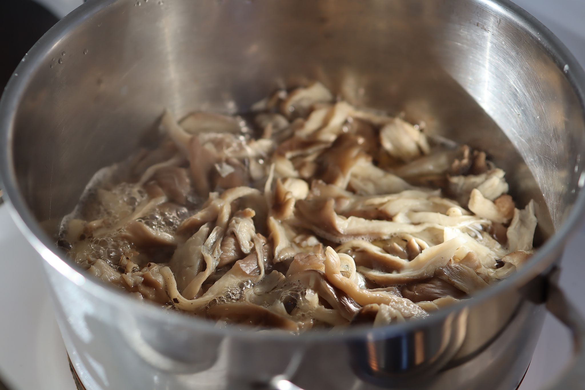 Svampen förlorar i volym väldigt snabbt när den förvälls och det blir bara lite i botten av kastrullen kvar.