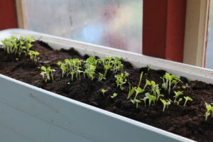Ungefär en vecka efter sådd gror fröerna. Då har det under tiden varit minusgrader nästan varje natt.