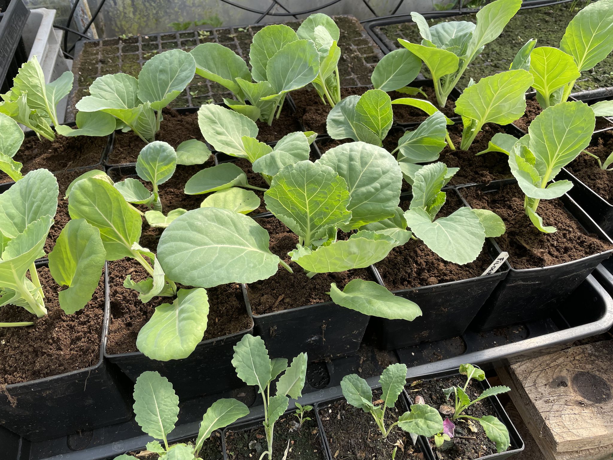 30. April 2021Knappt tre veckor senare har kålen planterats om igen, nu i krukor som är 11-cm i diameter.