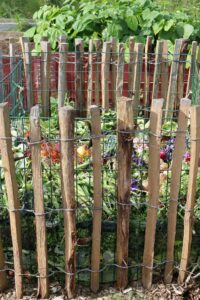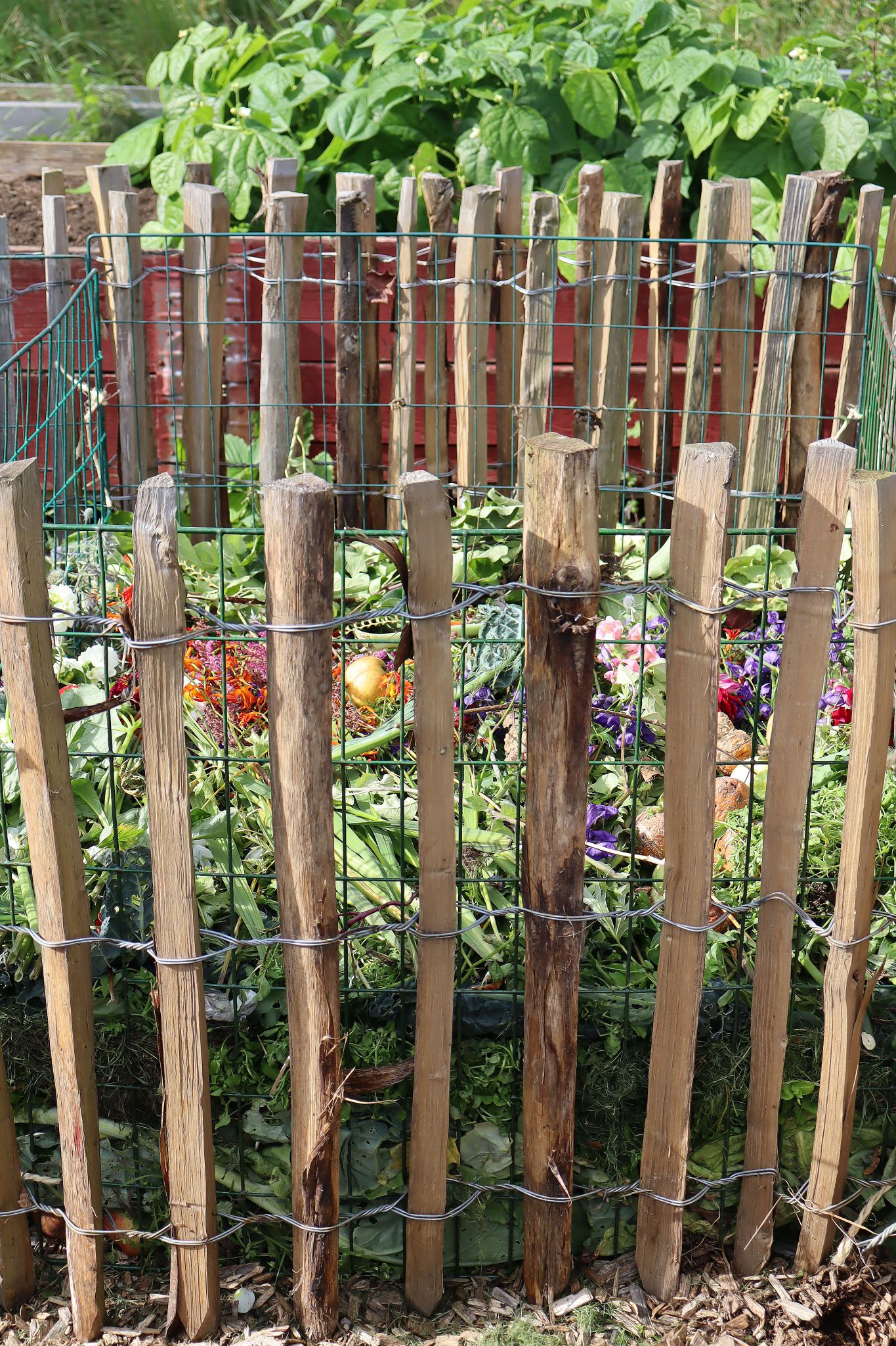 Det fula kompostgallret döljs till viss del av det låga staketet och från håll ser det mycket stiligt ut.
