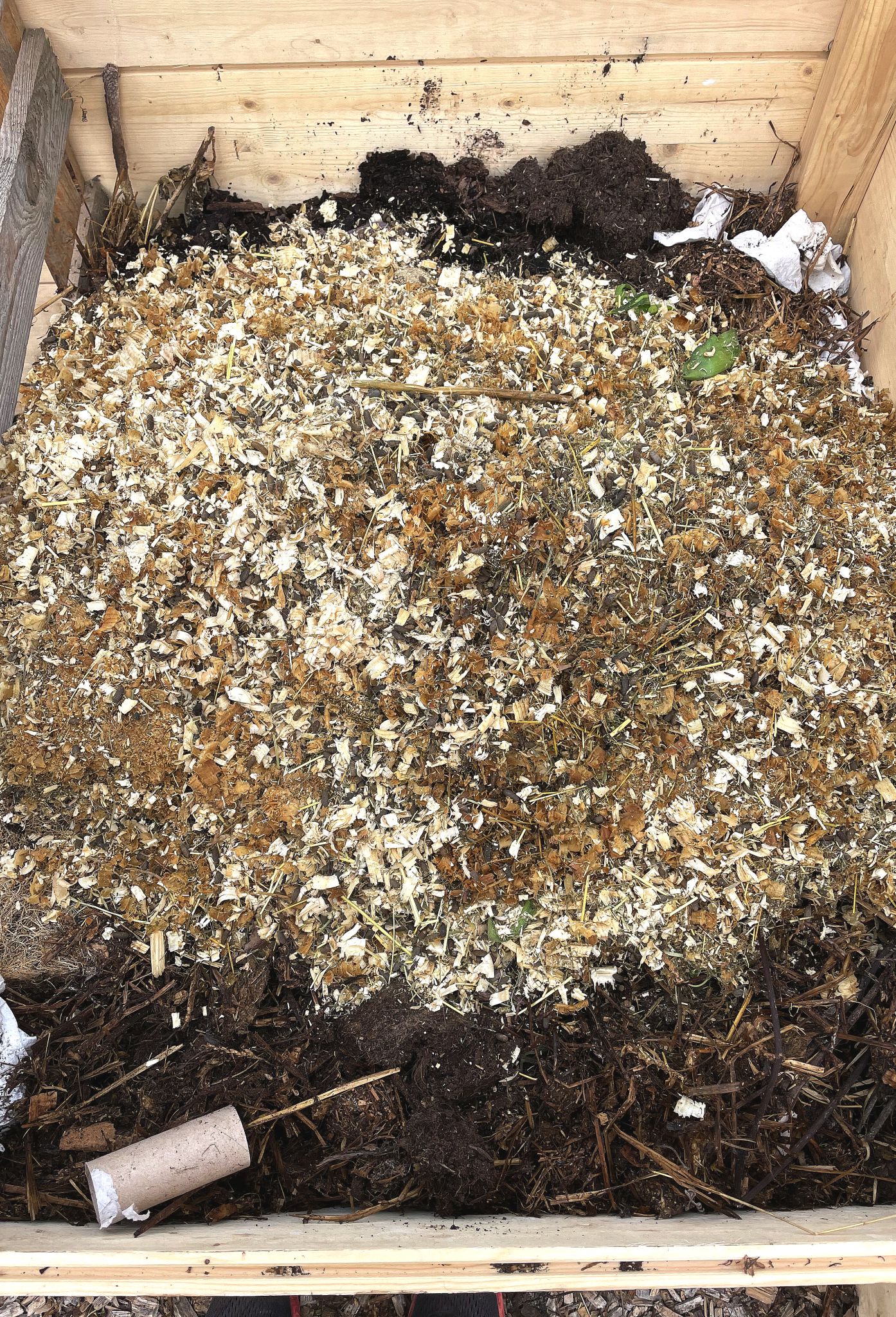 Här har jag i alla hast tömt ner marsvinsgödseln i trädgårdskomposten.
