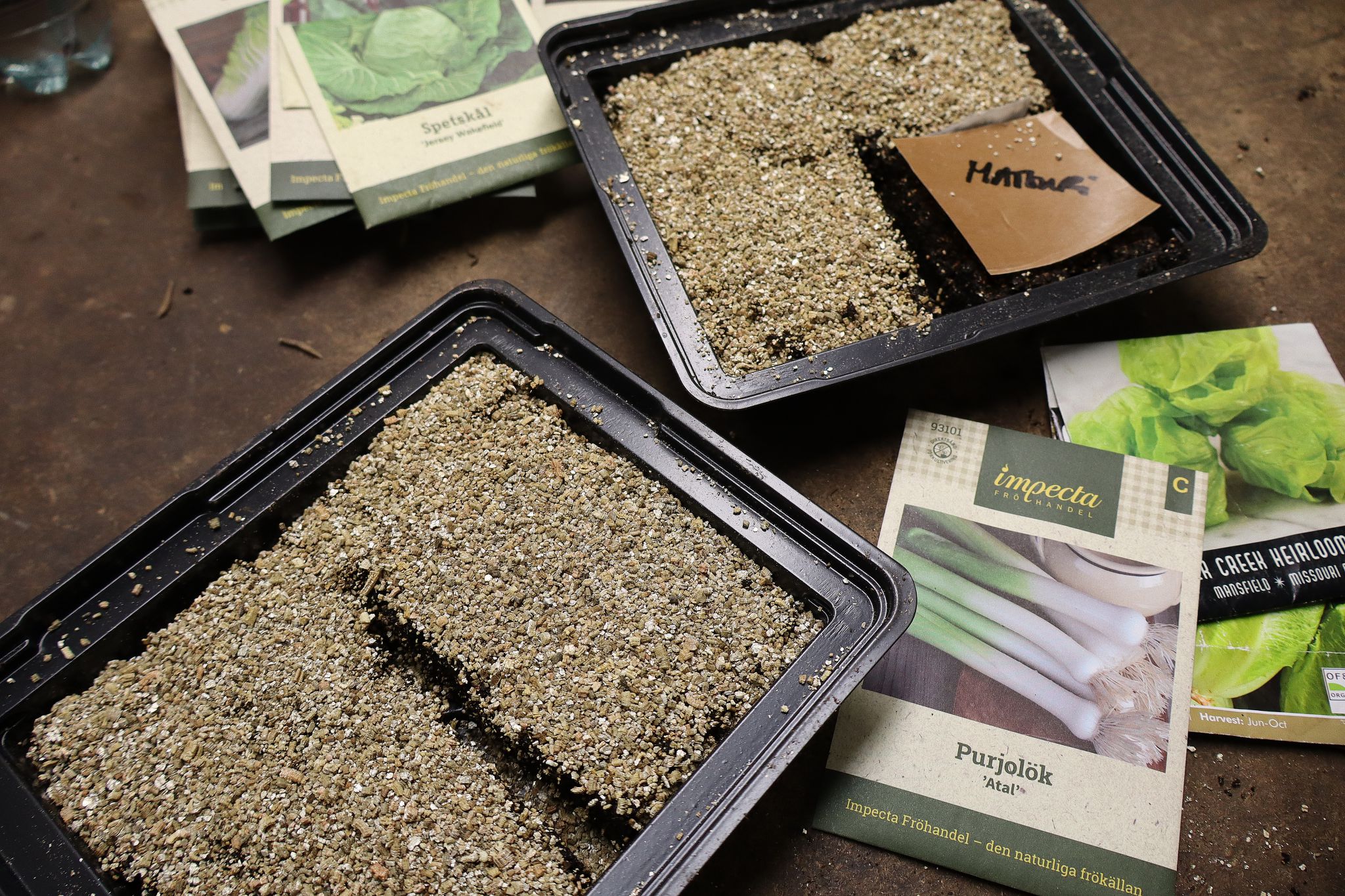 Min sådd av kål är klar. Nu väntar hemtransport för att gro under lock på golvvärmen i badrummet.