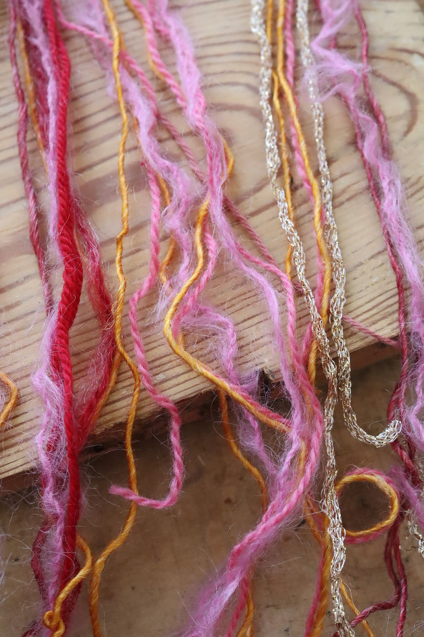 Garnändarna gör extra långa och används senare för att sy, sticka och virka dekorationer på plagget. Det blir hundratals ändar att ta hand om...