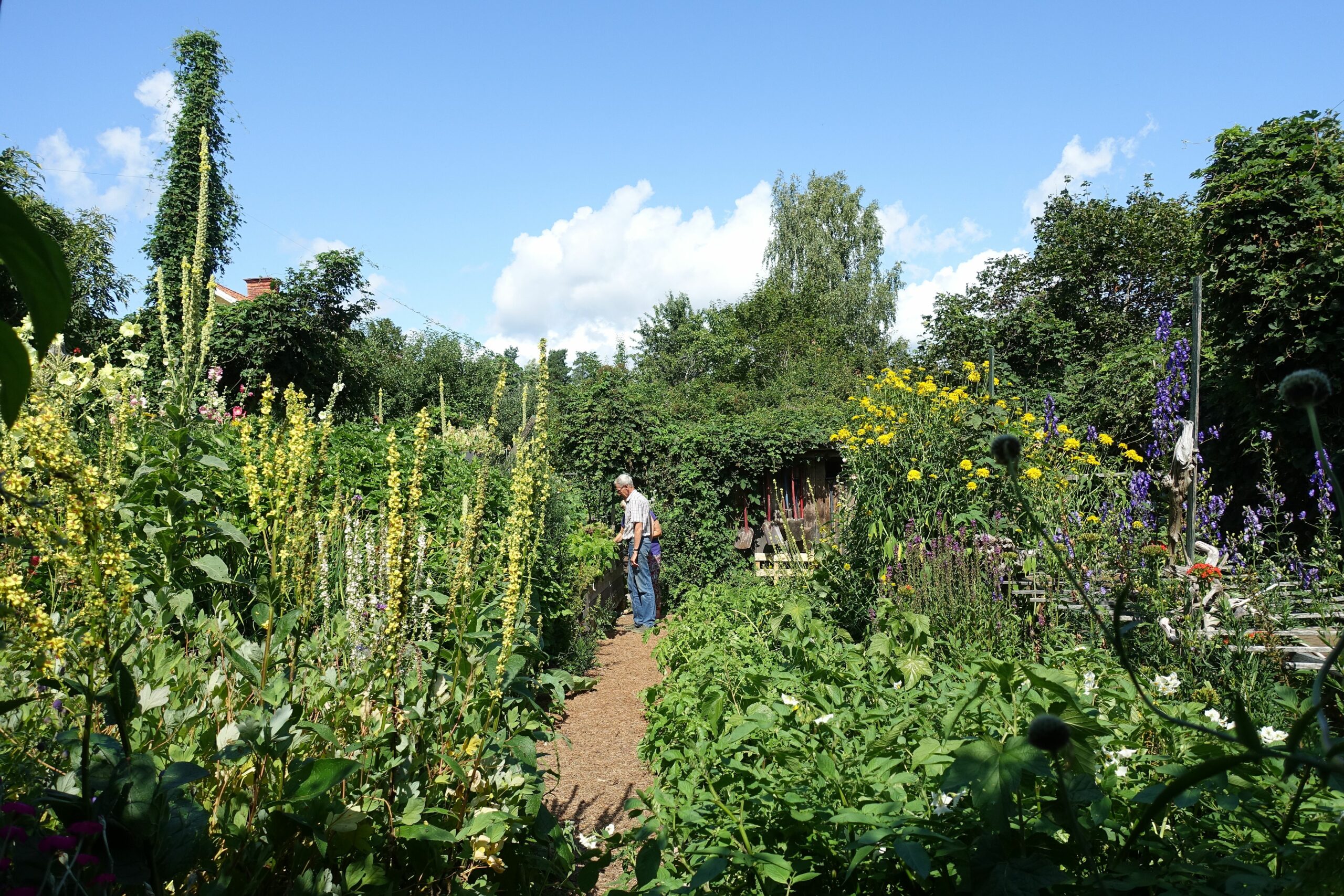 Börje Remstams trädgård är en fantastisk pärla, med höga perenner och sommarblommor som växer tillsammans med frodiga grönsaker.