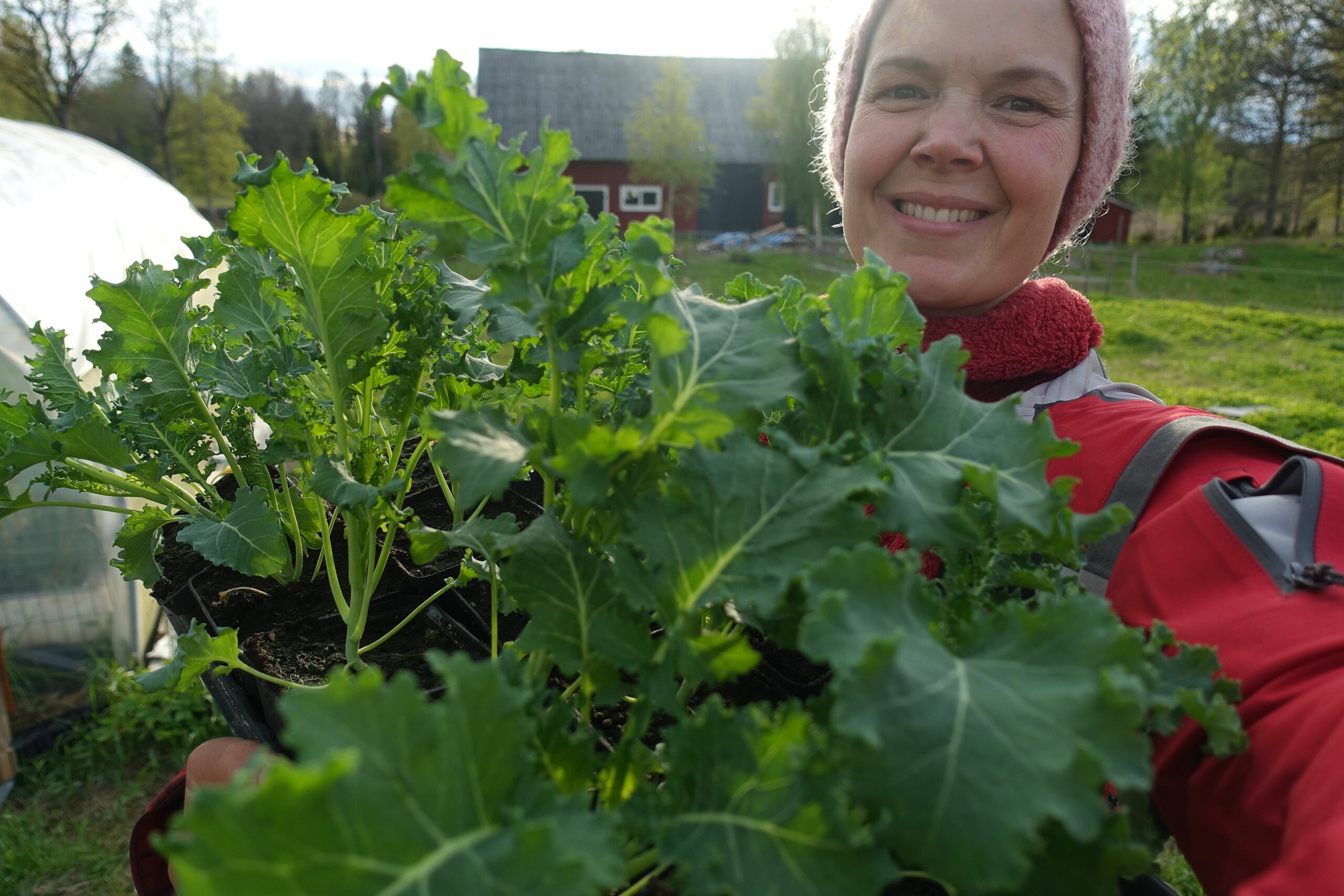 Grönkålen är sådd mitt i vintern i det som kallas för vintersådd. Plantorna är otroligt fina nu när det är dags för utplantering.