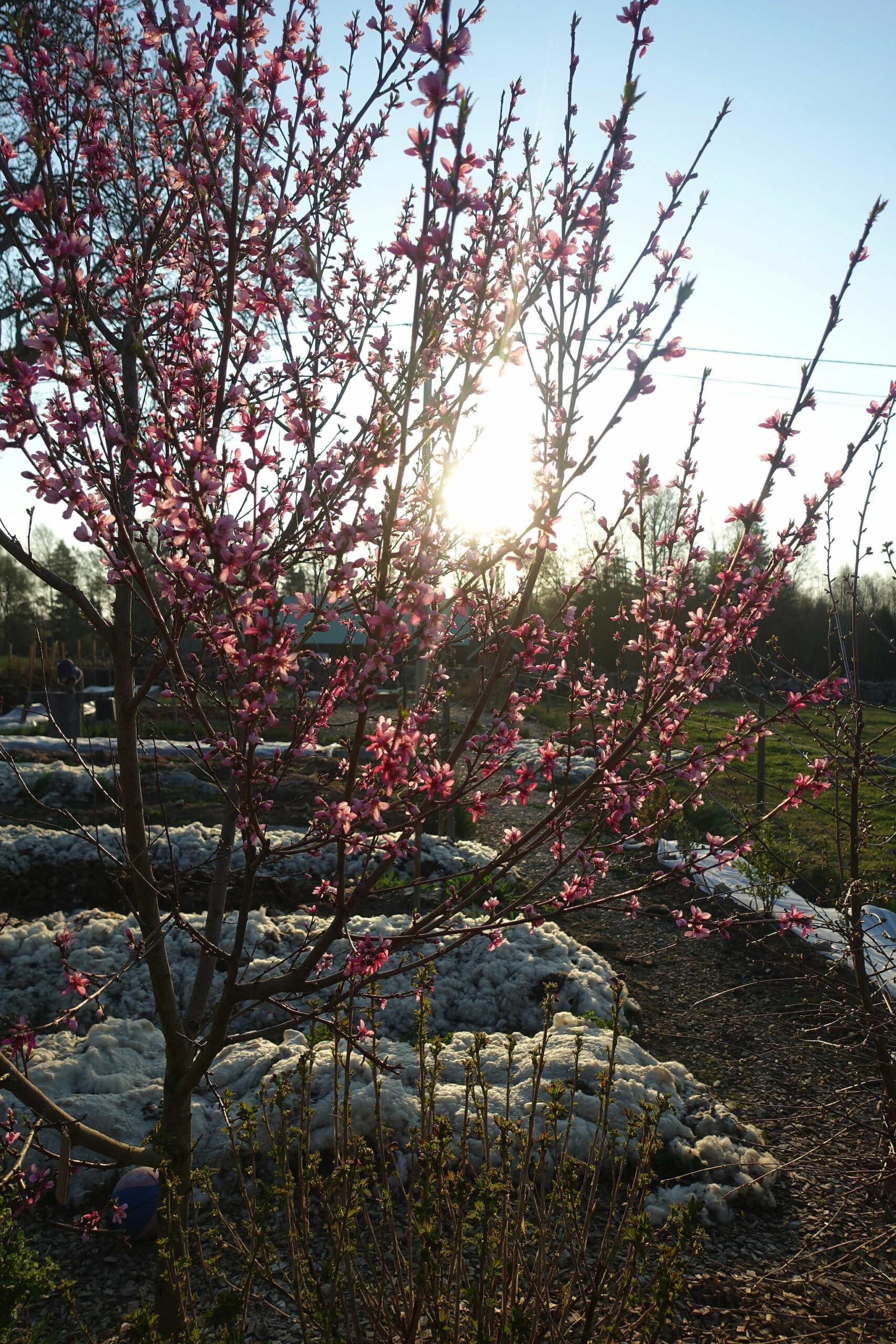 21. March 2020Persikoträdet på friland brukar blomma i april.