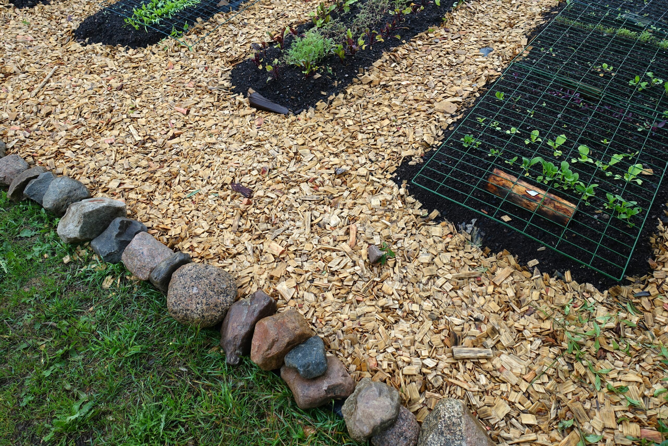 sten, kant, träflis, gräsmatta, sara bäckmo, sara backmo, skillnadens trädgård, sara's kitchen garden, stone, edge, garden, woodchips, wood chips,