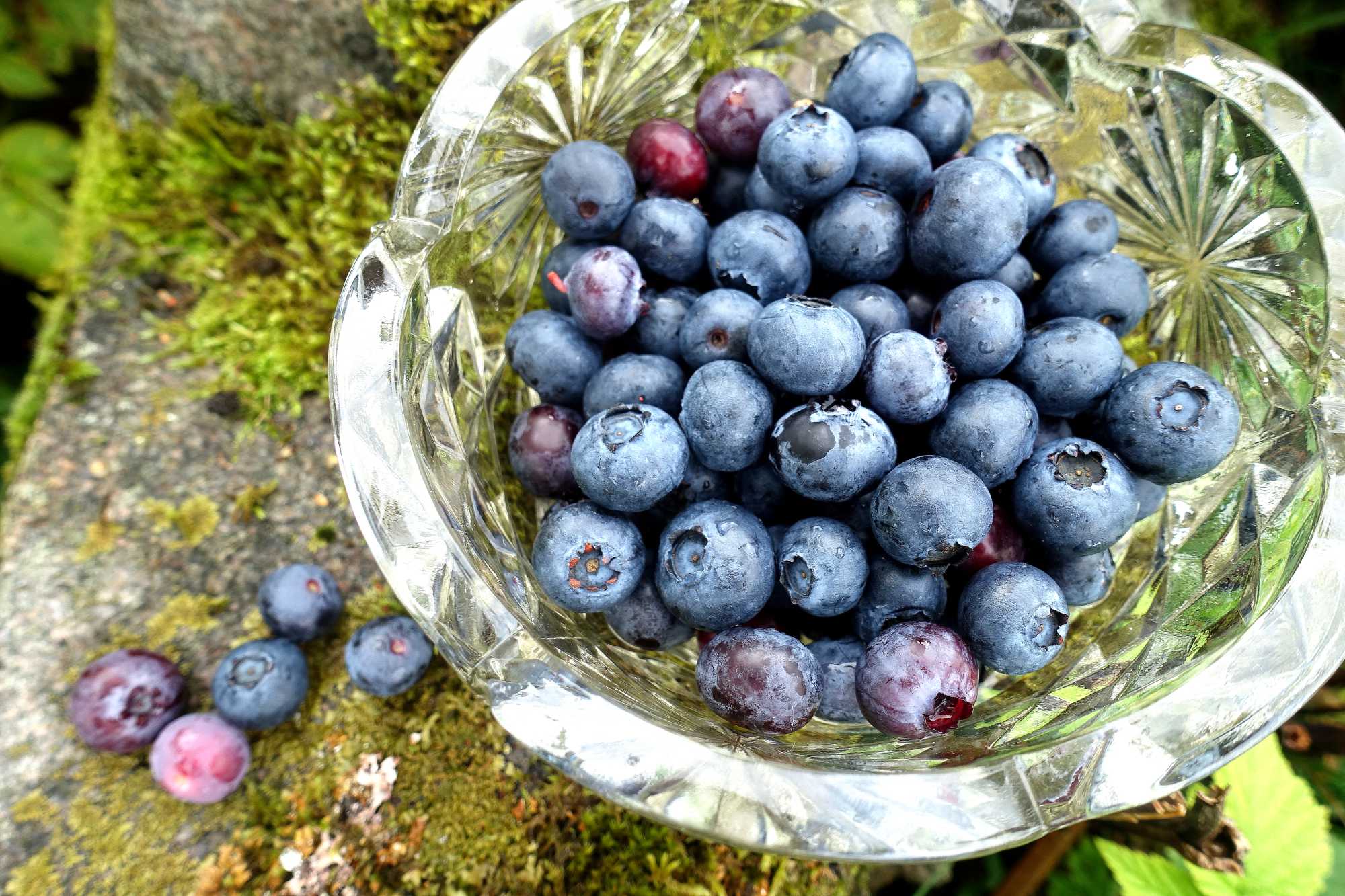 En skål med blåbär till frukost, direkt från trädgårdens långa häck av blåbärsbuskar.