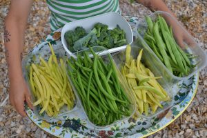 Jag odlar mycket baljväxter, både bönor och ärter. De ger mycket bra mat som vi bland annat fryser in.