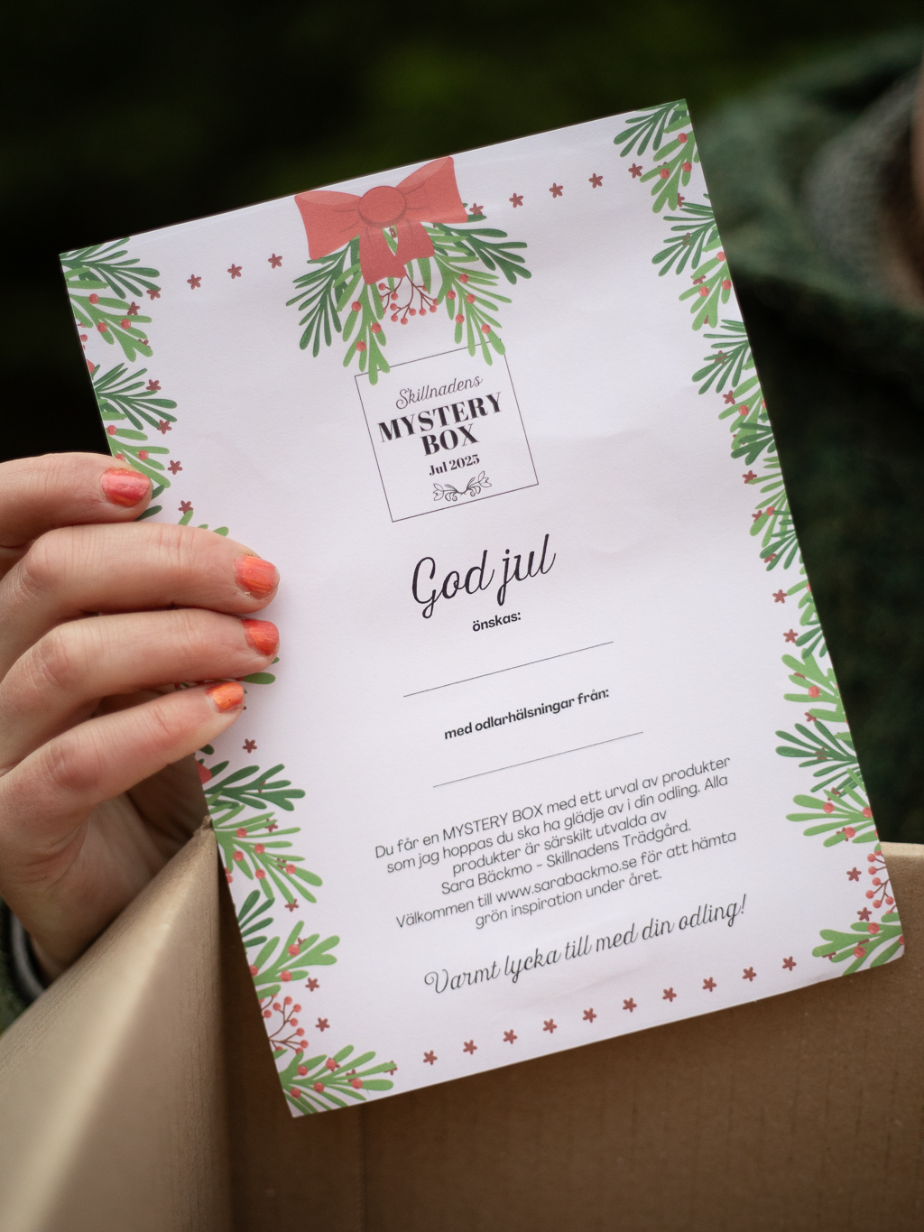 sara bäckmo, skillnadens trädgård, mystery box, mysterybox, jul